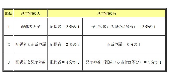 - 子や父母、兄弟姉妹が複数いる場合には、その相続分は法定相続分を等分します。