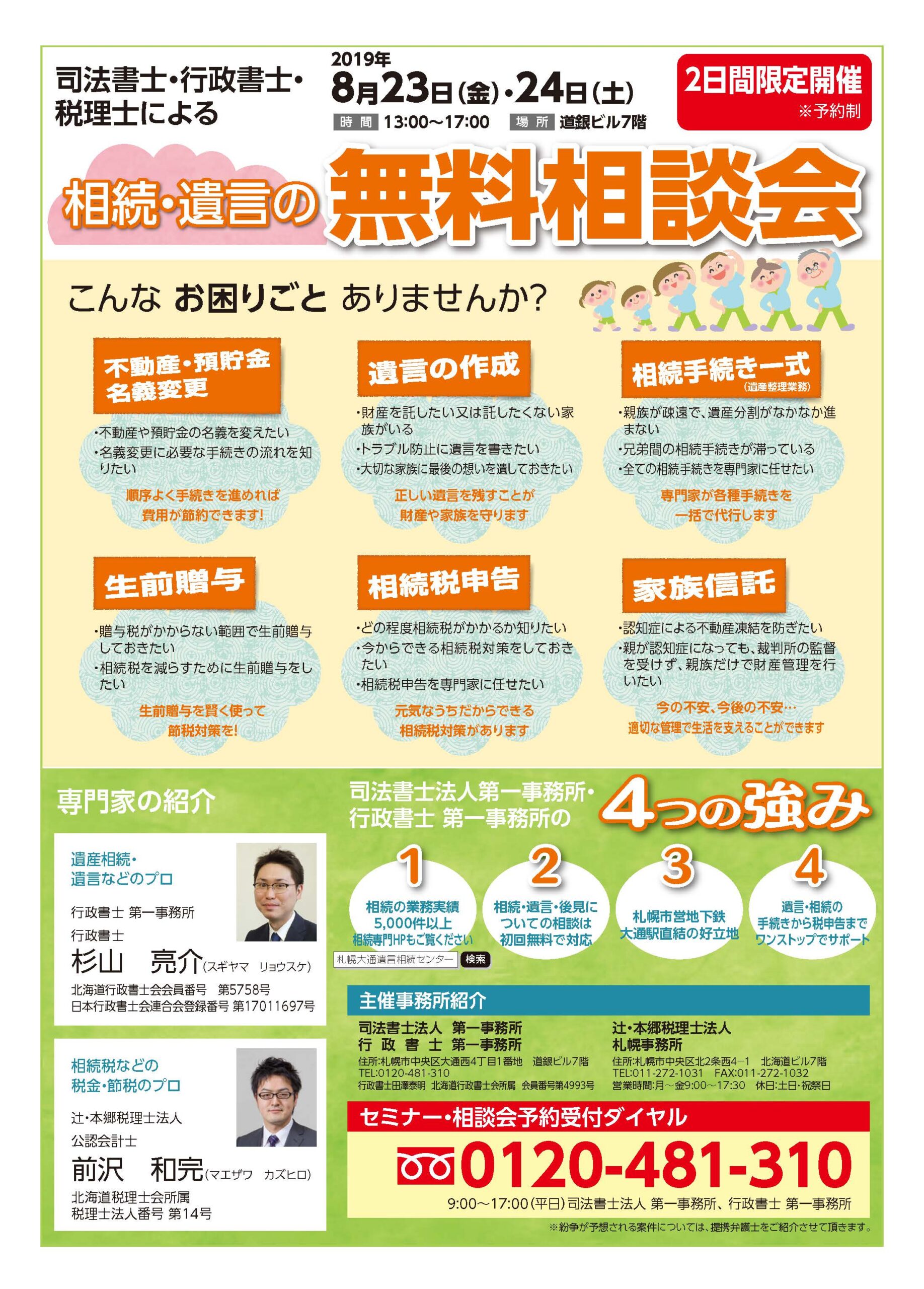 札幌大通遺言相続センターを運営する司法書士法人第一事務所主催